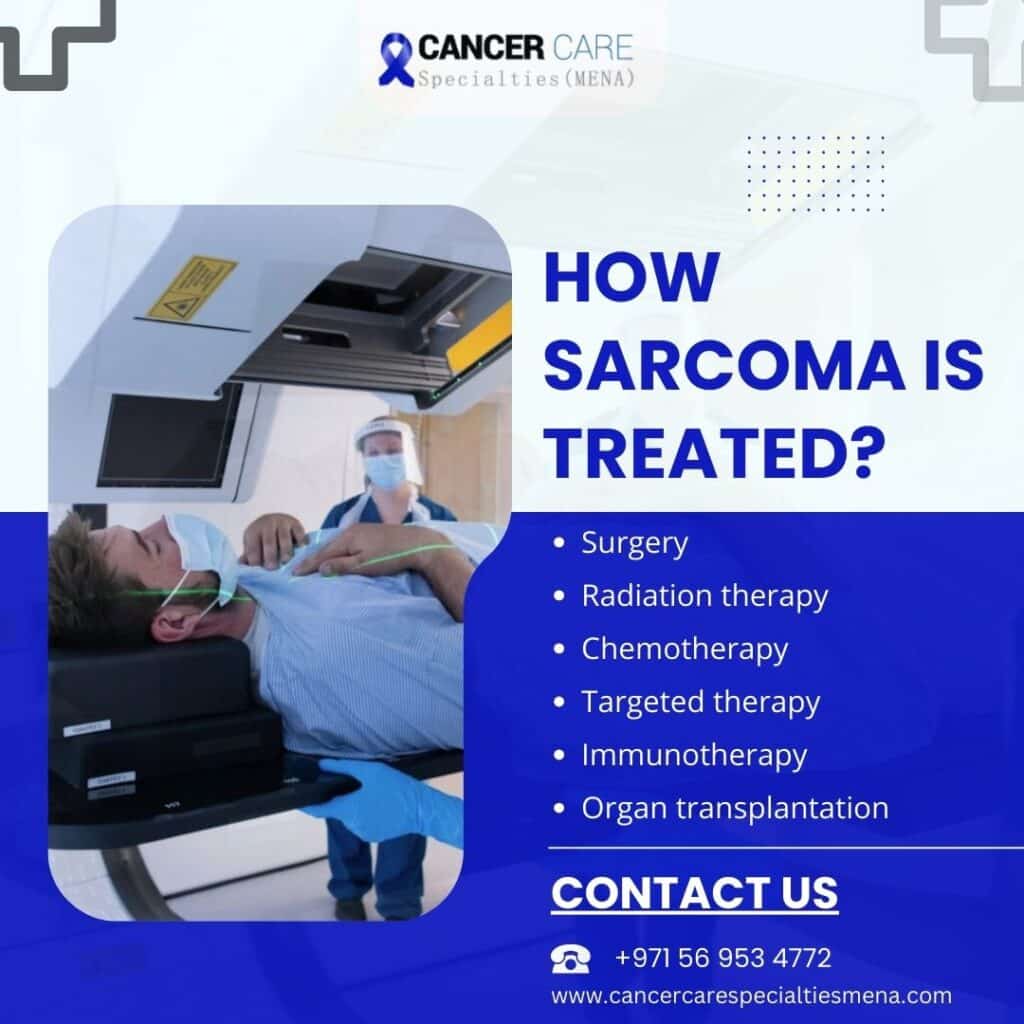 Treatment for sarcoma typically involves a combination of therapies such as surgery, chemotherapy, radiation therapy, and targeted therapy. The specific approach may vary, but the goals usually include removing as much of the tumor as possible, killing any remaining cancer cells, and preventing the cancer from recurring.